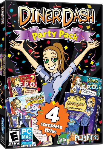 Diner Dash Party Pack features the original Diner Dash Diner Dash 2: Restaurant Rescue Diner Dash: Flo on the Go and Diner Dash: Hometown Hero!Features: Over 20 Restaurants to Manage! Customizable d cor outfits and more! Choose to play in Career or Endless modes Available for both Mac and PC System Requirements:XP (Home & Pro) SP3/ Windows Vista® ¹ Pentium® III 700MHz or higher (800MHz processor for Vista) 128MB RAM (512MB RAM for Vista) 16x DVD-ROM drive or faster 90MB free hard disk space DirectX® 7.0 compatible or higher video card (3D video card with 32MB of video RAM for Vista) 800x600 16-bit color display Keyboard & mouse Internet connection is required for Together features (multiplayer sharing content - PC only User requires an account on www.playfirst.com to access the Together features)² . Macintosh® OS X 10.4 10.5¹ PowerPC G4 G5 or Intel processor 800MHz processor or higher 256MB RAM DVD-ROM drive or faster 90MB free hard disk space 800 x 600 16-bit color display Keyboard & mouse. ¹Administrator privileges are required to properly install the program on Windows XP Vista and Mac OS X. ²User is responsible for all Internet access fees and phone charges.Format: WIN XPVISTA/MAC 10.1 OR LATERUB Genre: ENTERTAINMENT Rating: E Age: 705381188612 UPC: 705381188612 Manufacturer No: 18861